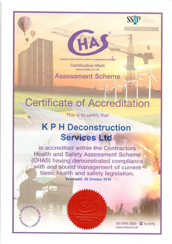 CHAS Certificate – KpH Deconstruction – Exp 20-10-2016